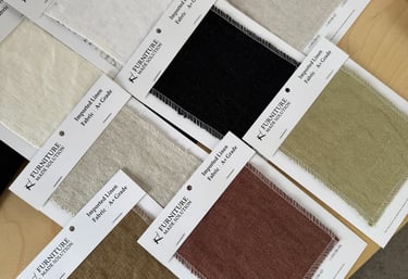 While specializing in linen, we offer a curated selection of complementary performance fabrics (polyester blends, microfibers, boucles) suitable for higher-traffic environments. We can also work with customer-supplied fabrics (CSF).