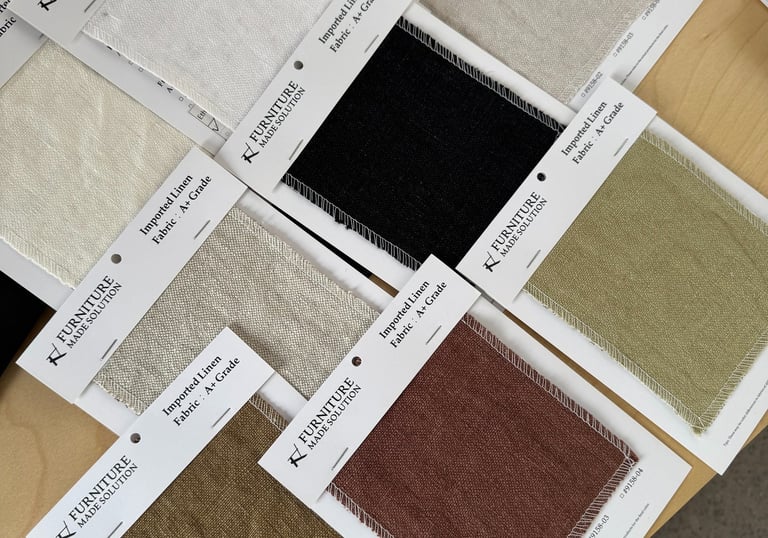 Linen: We guide fabric selection based on intended use (residential, contract). Offer solution-dyed or performance-treated linens for enhanced stain resistance and durability where required.